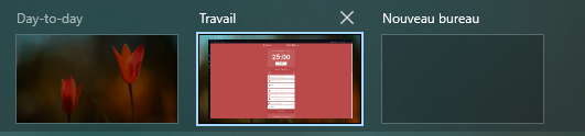 Personnellement, j’utilise deux bureaux séparés sur mon ordinateur : un dédié à mon espace personnel, et un autre pour le travail, afin de compartimenter les deux. (Sur Windows 10, c’est la touche Windows + Tab et regarder en haut de l’écran.)